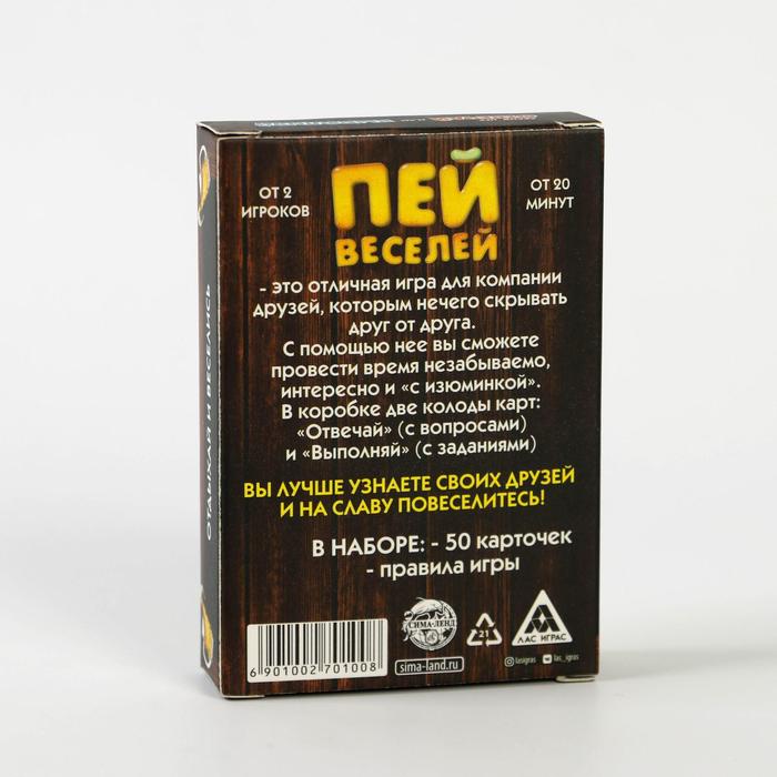 Купить игра для компании "пей веселей" 50 карт от 180 руб. с доставкой до пункта выдачи в Тюмени. Интернет магазин ДекаМаркет. Оплата при получении.